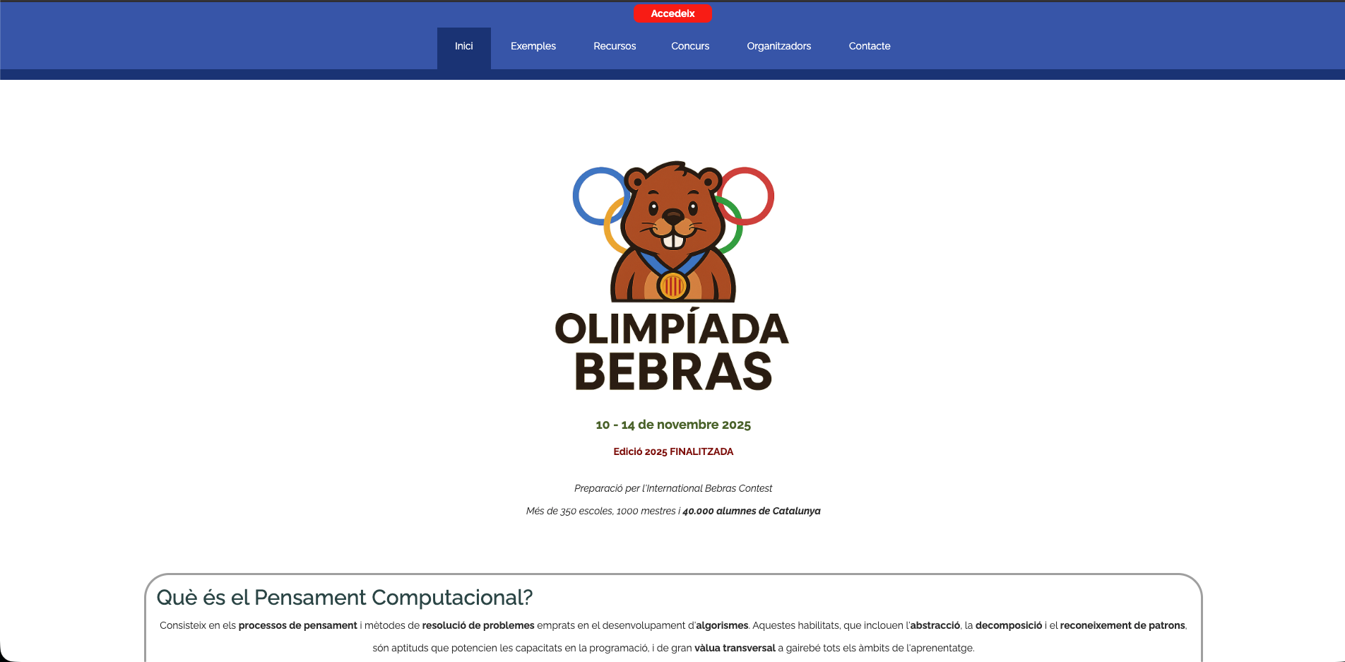 Bebras es un certamen internacional destinado a estudiantes desde Primaria hasta Bachillerato. Su objetivo principal es introducir al alumnado en los principios fundamentales del pensamiento computacional mediante actividades breves que requieren analizar información, identificar patrones, abstraer elementos clave, descomponer procesos y evaluar posibles soluciones desde una perspectiva estratégica. Estas actividades, conocidas como tarjetas Bebras, están diseñadas cuidadosamente para promover un aprendizaje significativo y fomentar habilidades de razonamiento de orden superior.