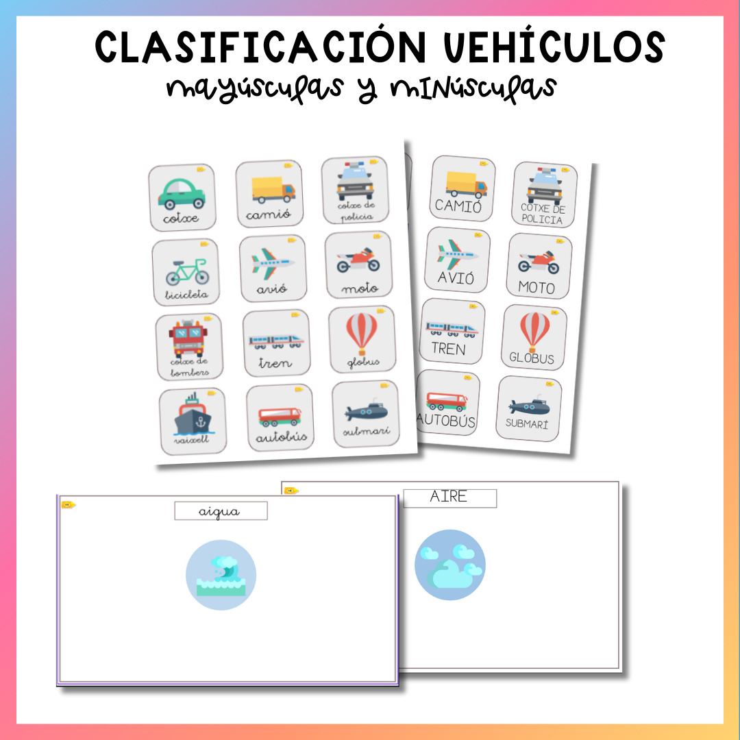 INSTRUCCIONES: Descargar y recortar las imágenes. El juego consiste en clasificar los diferentes medios de transporte según el lugar por el que se desplazan (tierra, agua o mar).
