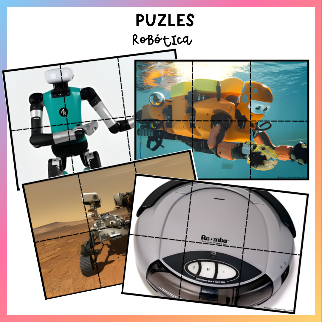 Los puzles de robótica son una propuesta desenchufada para acercar a los niños y niñas al mundo de la robótica de forma manipulativa y visual.